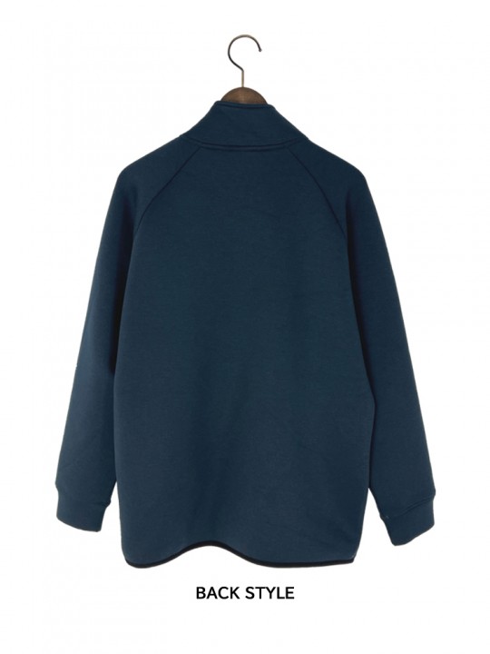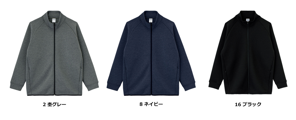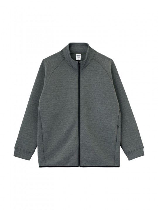 襟の立ち上がりが顔周りをスッキリ見せるトラックジャケット。