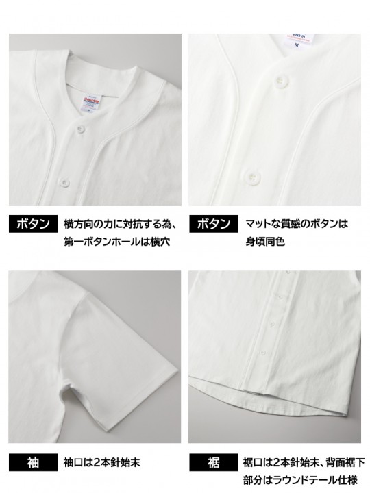 OE天竺素材を使用した8.5オンスのベースボールシャツ。