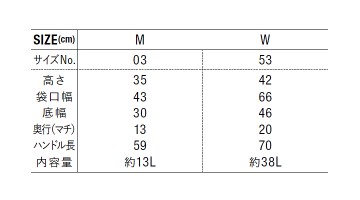 ●内容量:Mサイズ約13L/Wサイズ約38L