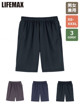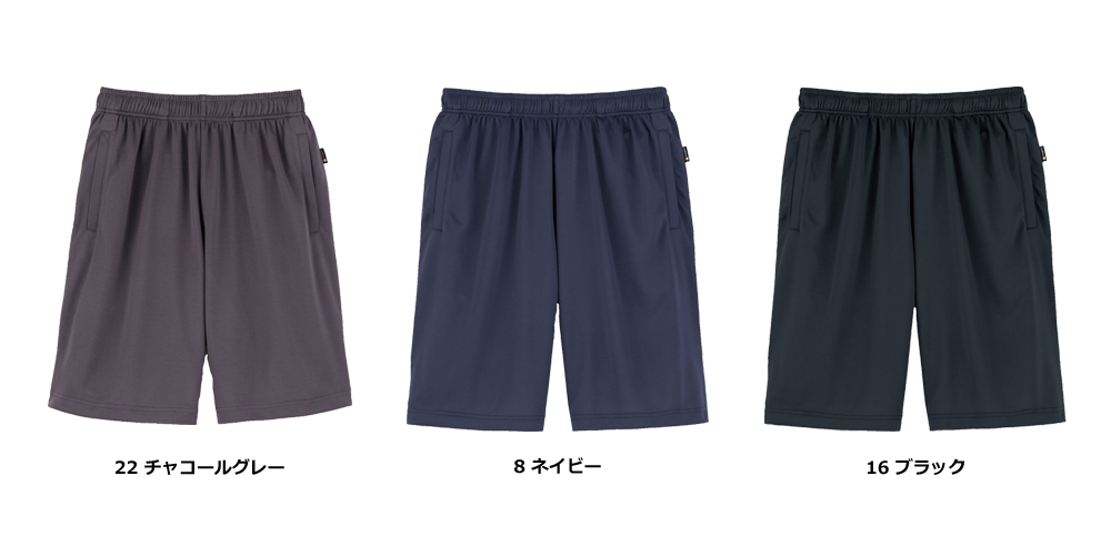 メッシュ素材のハーフパンツはサラッと涼しい穿き心地で、ドライ素材だから汗をかいてもすぐ乾いて快適。両脇ポケットやウエストゴム、さらにヒモ付きでサイズ調整もしやすく、気軽に穿けるのがポイント。ダークカラーの3色展開で、夏に1枚持っておきたい便利なアイテムです。