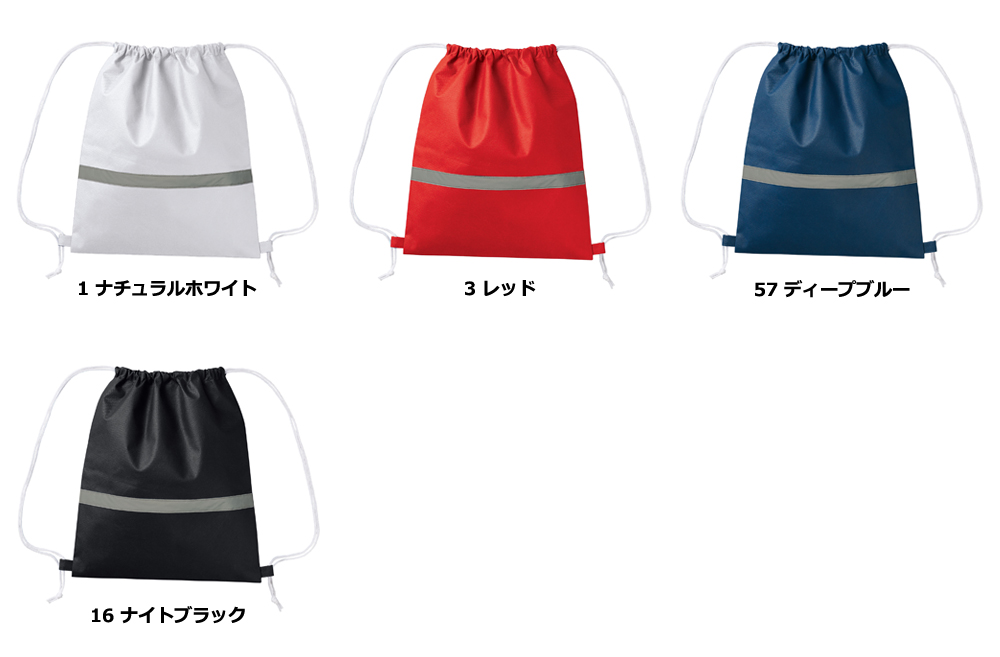 軽くて扱いやすい不織布素材を使った巾着リュック。リフレクター付きで暗闇でもしっかり反射し、夜間の外出や移動時も安心です。シンプルなデザインで使いやすく、用途に合わせて選べる4色展開。普段使いからサブバッグまで幅広く活躍します。