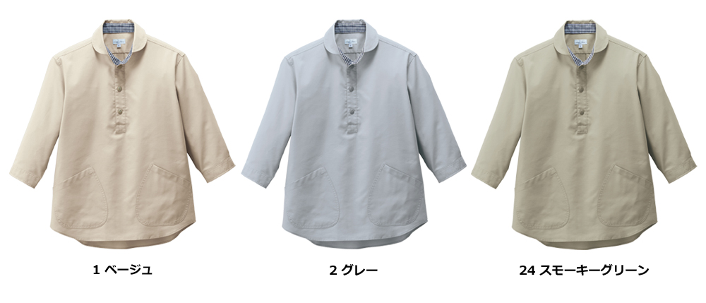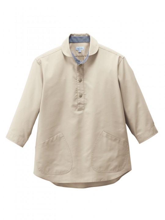 ラフな印象で着られるプルオーバータイプの7分袖シャツ。オックスフォード生地ならではの清潔感があり、やさしい雰囲気で取り入れやすい一枚です。ほどよく力の抜けたデザインで、ナチュラルなスタイルに馴染みます。落ち着いたナチュラルカラーの3色展開です。