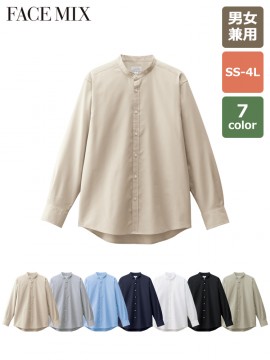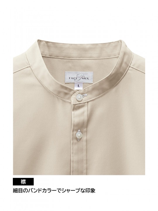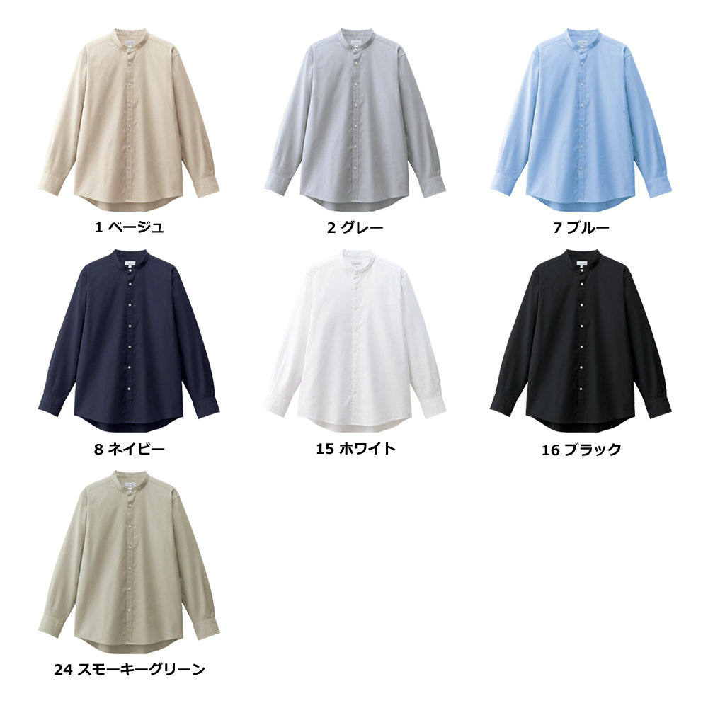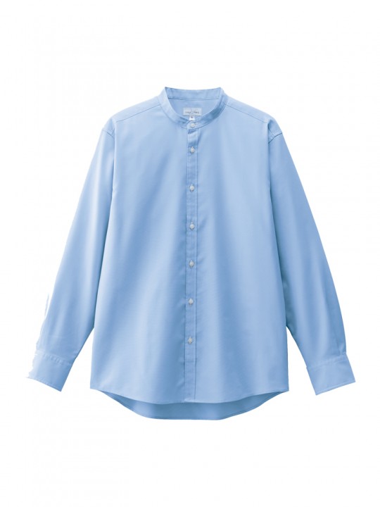 オックスフォード素材を使った、長袖のバンドカラーシャツ。首元がすっきり見えるバンドカラーで、清潔感のある印象に仕上げています。背中にはサイドタックを入れ、動きやすさにも配慮。ナチュラルカラーや、ベーシックな色味を揃えた7色展開です。