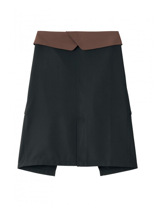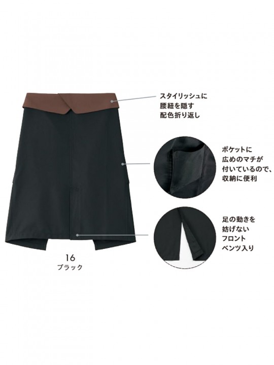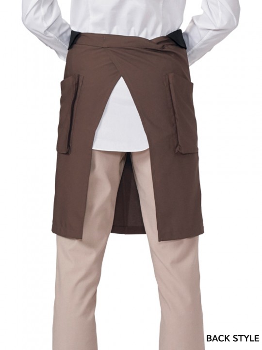 配色デザインがスタイリッシュなミドル丈のエプロン。ウエストは折り返し仕様で、腰まわりをすっきり見せてくれます。ポケットはマチ付きで広めに設計され、実用性も十分。フロントベンツ入りで動きやすく、立ち仕事や接客シーンにも使いやすい一枚です。コーヒーカスを再生した素材を使用し、環境にも配慮。ブラウンとブラックの2色展開です。