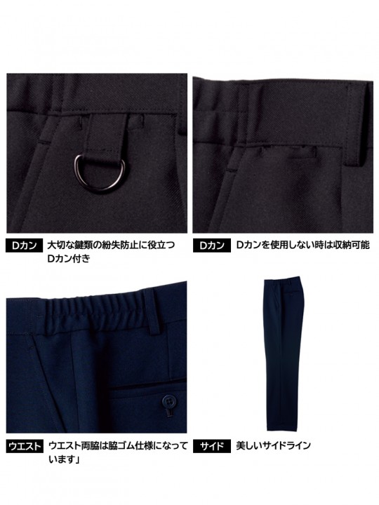 ■機能:パンツ裾上げ可能・脇ゴム入り・Dカン付