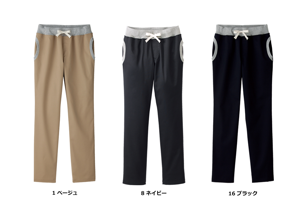 ■特徴:両脇ポケット口フライス使い・ウエストフライス仕様・平ゴム入りウエスト紐入り・ウエスト調節可能