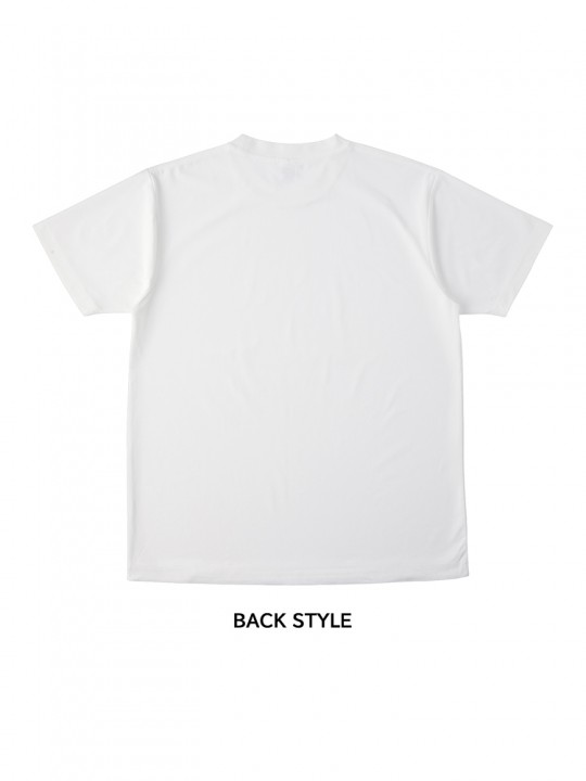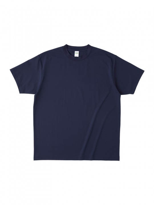 リサイクルポリエステルと植物由来原料を用いた、2種類のポリエステルから作られたTシャツ。サステナブルな素材を使用し、ポリエステルでありながらコットンのような自然な風合いが特徴です。