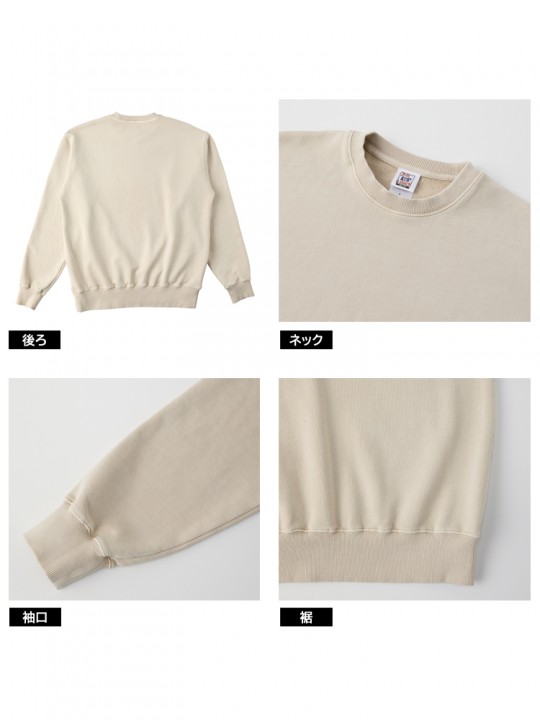 ピグメント(顔料染め)を施し、着込むほどに風合いの変化を楽しめる裏毛スウェット。ヴィンテージのようなムラ感のある表情が魅力です。裏糸にはオープンエンド糸を使用し、ざっくりとしたドライな肌ざわりに仕上げました。シンプルながら存在感のある一枚。3色展開。