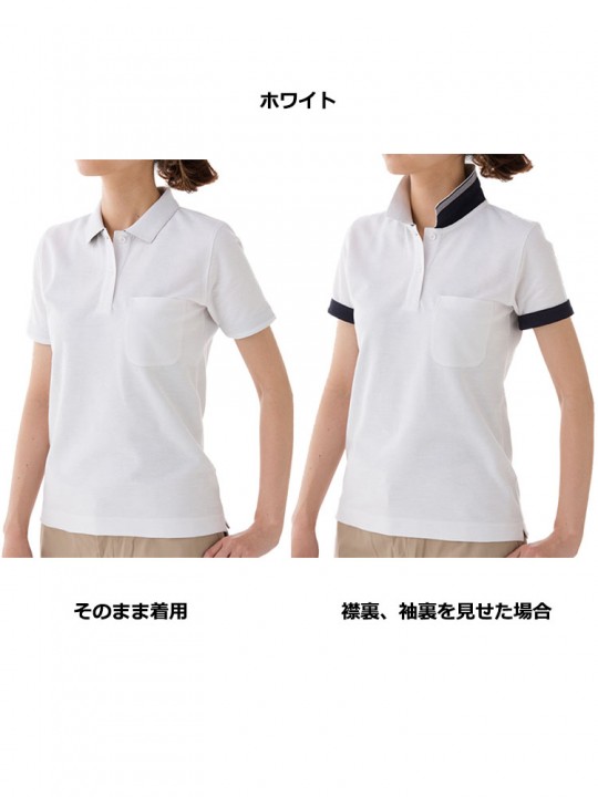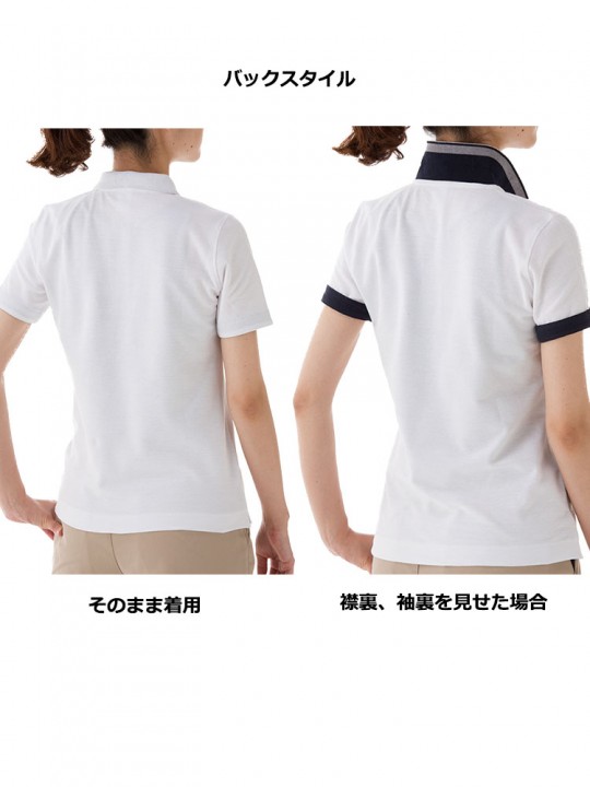 襟と袖の裏にアクセントカラーのついた2WAYポロシャツ。