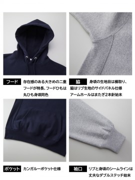 12.7オンス ヘヴィーウェイト スウェット プルオーバー パーカ(裏パイル)